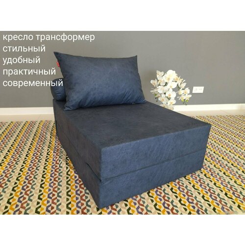 Однотонное бескаркасное раскладное кресло- кровать, акробат Дакота Деним