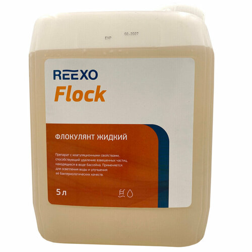 Жидкий коагулянт (флокулянт) Reexo Flock для поглощения и удаления взвешенных частиц в воде бассейна, 5 л, цена - за 1 канистра