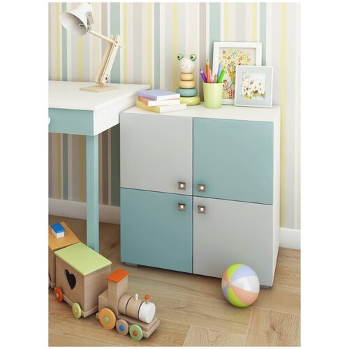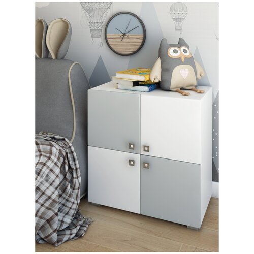 Комод детский 4 двери, бело-серый, стеллаж для игрушек