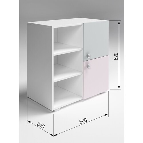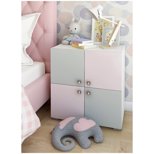 Комод детский 2двери, 3 ниши, розово-серый, детский