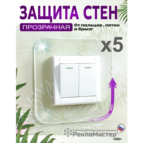 Накладка рамка под выключатель и розетку внутр. размер 6х6см для защиты обоев прозрачная 5 шт ПЭТ 0,3мм / Рекламастер
