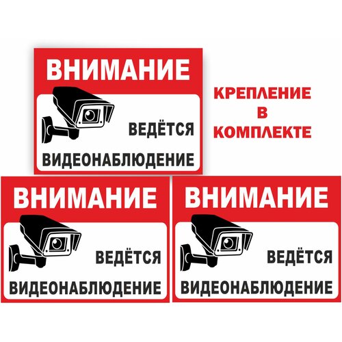 Комплект Табличка на дверь 15х20 3шт внимание ведется видеонаблюдение УФ-печать ПВХ 4мм Рекламастер / информационная табличка декоративная наклейка