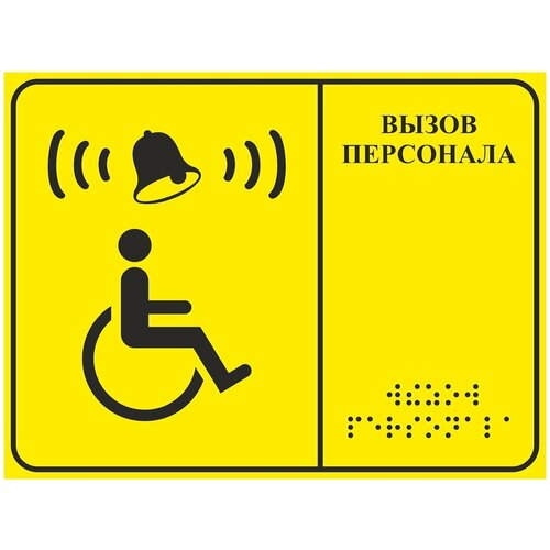 Тактильная табличка со шрифтом Брайля Кнопка вызова, 150х200мм, ПВХ 3мм, Рекламастер / Доступная среда ГОСТ 52131-2019