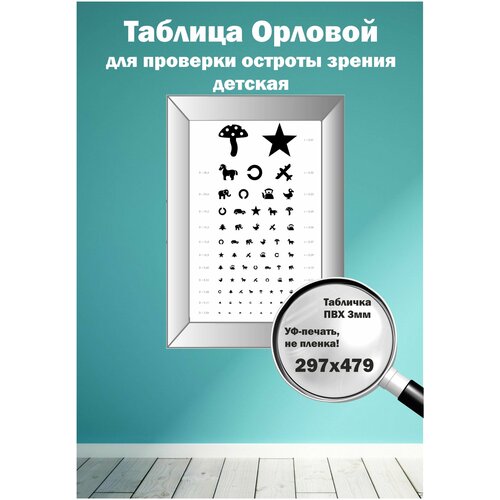 Таблица Орловой для проверки остроты зрения у детей 297х479мм, пластик ПВХ 3 мм, УФ-печать. Рекламастер. Крепление в комплекте!