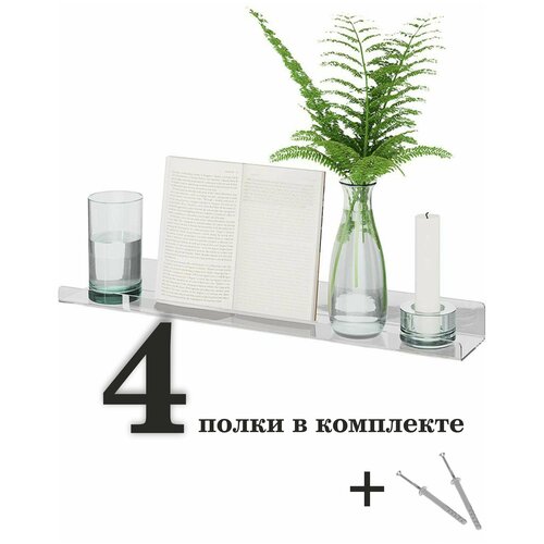 Полка навесная премиум с креплением настенная прямая прозрачная оргстекло 5мм 40х10х10 см комплект 4шт Рекламастер HOME