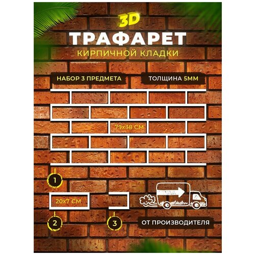 Трафарет для стен кирпич 650х300мм (имитация кирпичной кладки под штукатурку) многоразовый ПЭТ 2мм Рекламастер / трафарет под кирпич купить