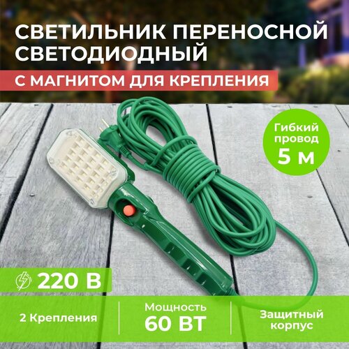 Переносной светильник с выключателем и удлинителем. Лампа автомобильная переносная светодиодная с магнитом для крепления 5 метров, 220В.