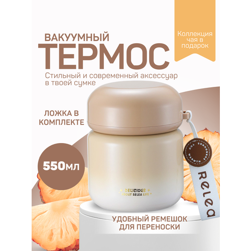 Термос для еды и чая, 550 мл, RELEA, металлический, светло-коричневый, с широким горлышком и ложкой в комплекте