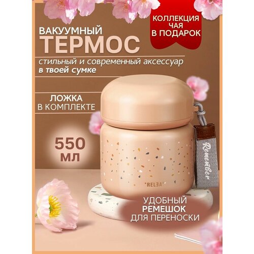 Термос для еды и чая, 550 мл, RELEA, металлический, светло-розовый, с широким горлышком и ложкой в комплекте