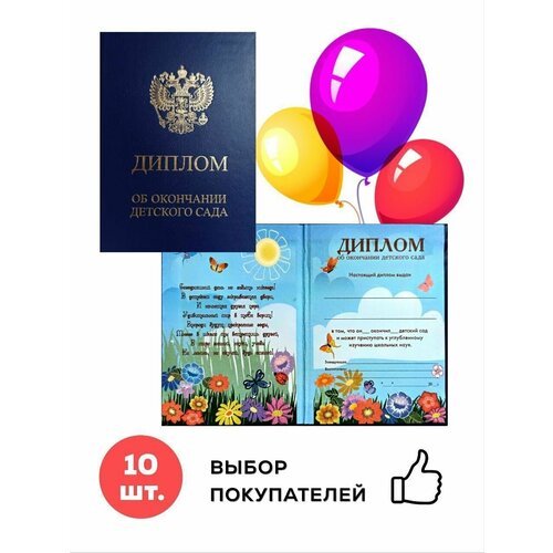 Диплом об окончании детского сада 10 шт,(лето), в твердом переплете, двойной разворот, 10,5х15 см.