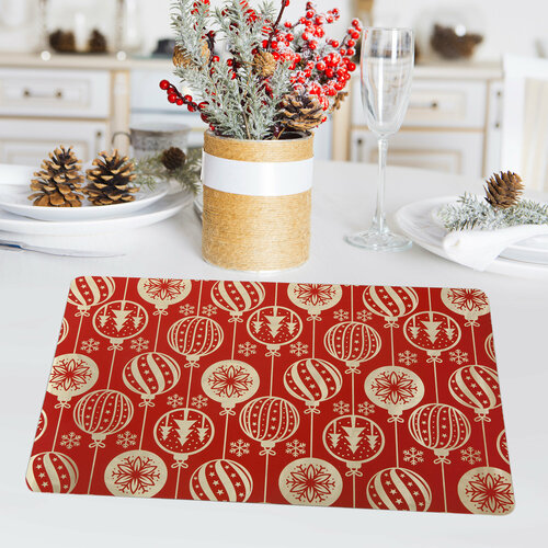 Салфетка 43.5x28.5 см Елочные игрушки красная