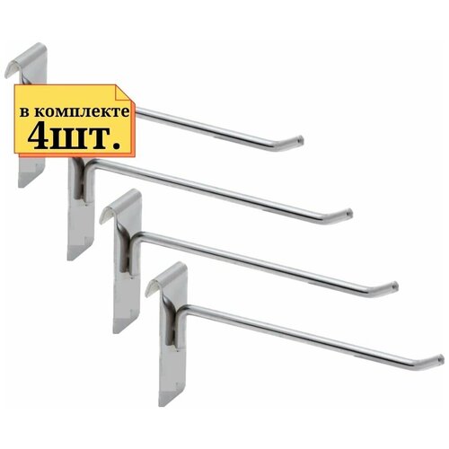 4шт Крючок тонкий на решетку 250мм (хром) на решетку или крепление на сетку