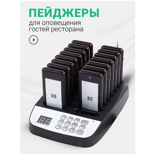 Система из 16 пейджеров R22113 для оповещения клиентов ресторана, кафе и фаст фуда