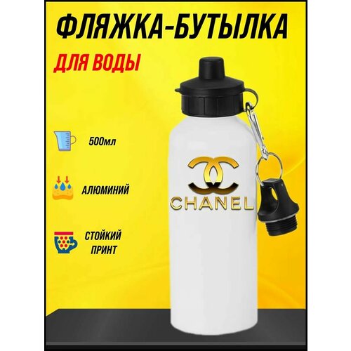 Фляжка-бутылка спортивная с принтом дарт Chanel 500мл