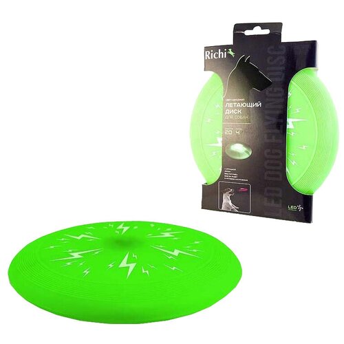 Апорт для собак RICHI Летающий диск зеленый с LED подсветкой, зеленый, 20 см 17839