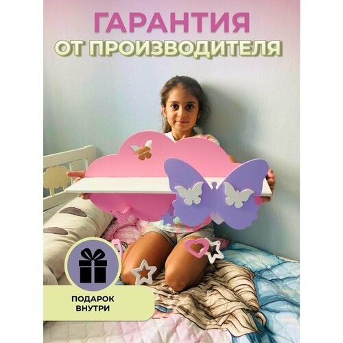 Полка настенная бабочка, навесная в детскую комнату, полочка для книга из дерева, деревянная вешалка для книг