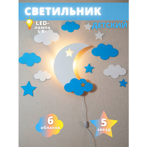 Детский настенный ночник в виде луны для мальчика