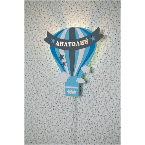 Именной ночник детский для сна Воздушный Шар по имени Анатолий для мальчика с именем вашего ребенка подарок на выписку в детскую светильник именной