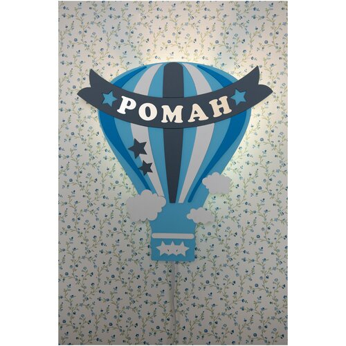 Именной ночник детский для сна Воздушный Шар по имени Роман для мальчика с именем вашего ребенка подарок на выписку в детскую светильник именной