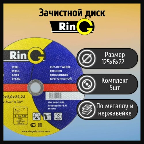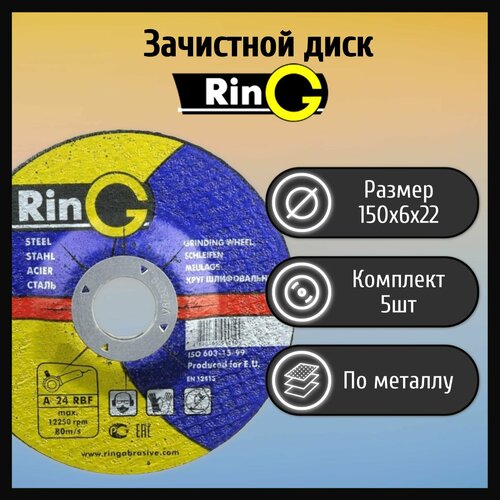 Диск зачистной 125х6х22 Ring металл и нержавеющая сталь (5 шт)