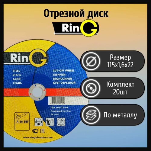 Диск отрезной 115х1,2х22 Ring металл и нержавеющая сталь (20 шт)