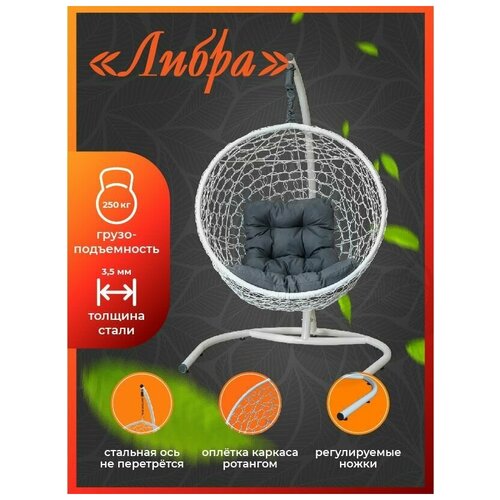 Подвесное кресло-кокон Либра белое с темно-серой подушкой