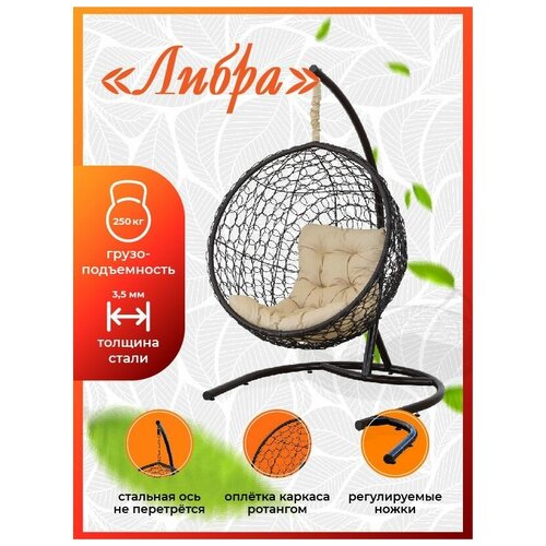 Подвесное кресло-кокон Либра коричневое с бежевой подушкой