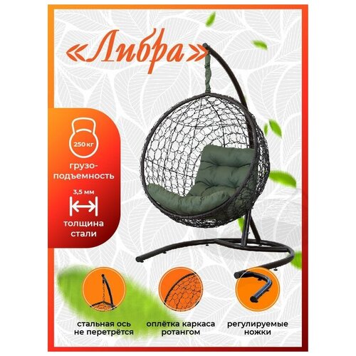 Подвесное кресло-кокон Либра коричневое с подушкой цвета хаки