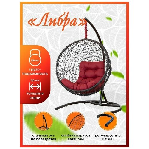 Подвесное кресло-кокон Либра коричневое с подушкой цвета бордо
