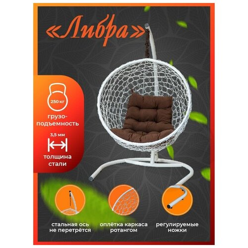 Подвесное кресло-кокон Либра белое с коричневой подушкой