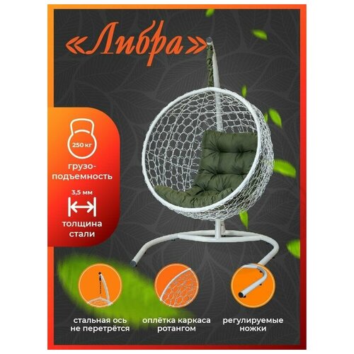 Подвесное кресло-кокон Либра белое с подушкой цвета хаки