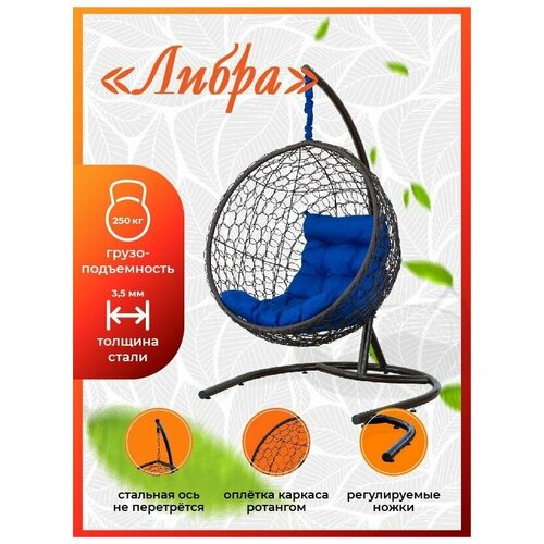 Подвесное кресло-кокон Либра коричневое с подушкой василькового цвета