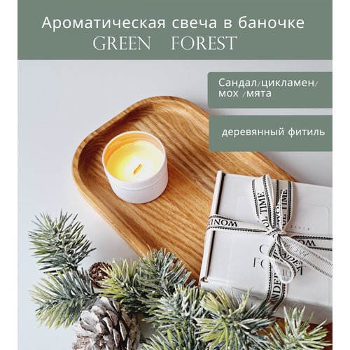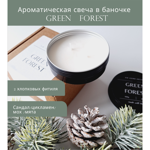 Свеча ароматическая "GREEN FOREST" , свеча с ароматом Зеленого Леса, 100мл, свеча в банке , свеча в металлической банке, подарок.