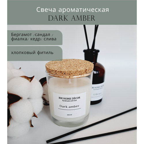 Свеча ароматическая/DARK AMBER/ 200мл/свеча с хлопковым фитилем/аромасвеча