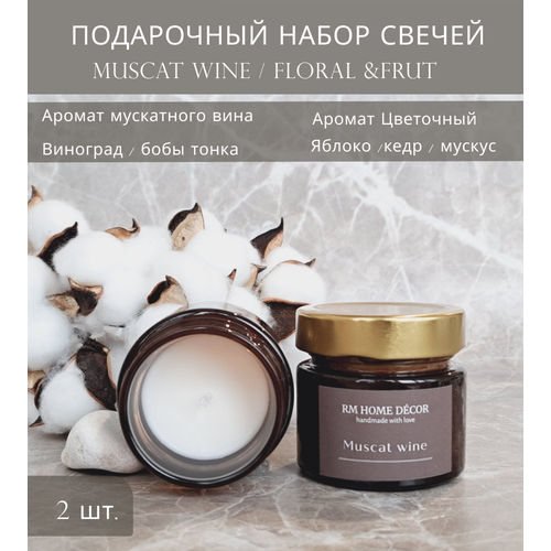 Подарочный набор, ароматических свечей MUSCAT WINE 100мл, набор свечей,2шт, подарок для женщины, 8 марта