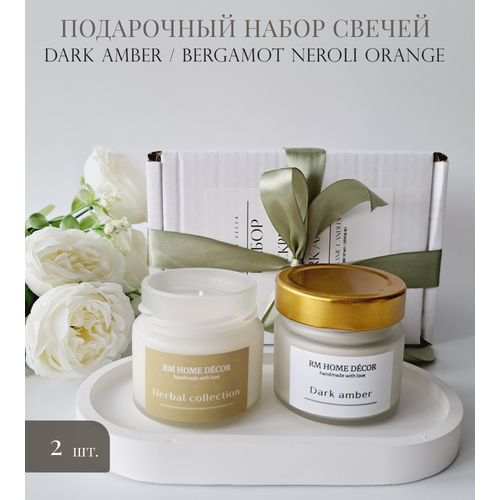 Подарочный набор ароматических свечей, BLACKBERRY & BAY/ DARK AMBER/ 100мл, набор свечей, подарок для женщины