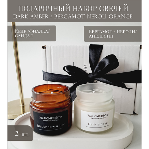 Ароматические свечи подарочный набор, BLACKBERRY & BAY/ DARK AMBER/ 100мл, набор свечей, 2шт, подарок женщинам