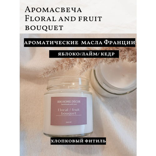 Свеча ароматическая "Floral & fruit bouquet" /200мл/ свеча с хлопковым фитилем/ свеча в банке/RICCI
