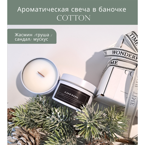 Свеча ароматическая "COTTON" , свеча с ароматом хлопка, свеча в банке ,100мл, свеча в металлической банке, подарок.