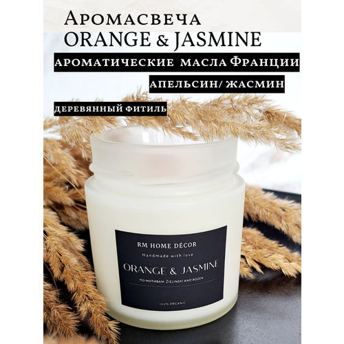 Свеча с деревянным фитилем"ORANGE & JASMINE"/200мл/свеча ароматическая/аромасвеча/набор свечей/подарок/Zeilinski