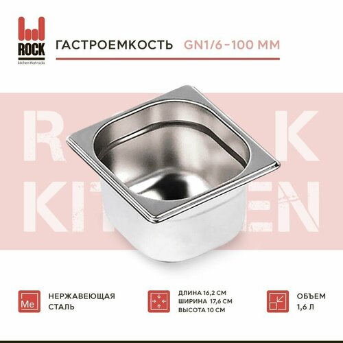 Гастроемкость из нержавеющей стали Rock Kitchen GN1/6-100 мм, 816-4. Металлический контейнер для еды. Пищевой контейнер из нержавеющей стали