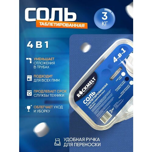 Соль таблетированная Rockmelt для посудомоечных машин 4-в-1, ведро 3 кг