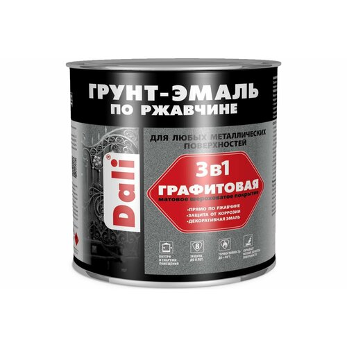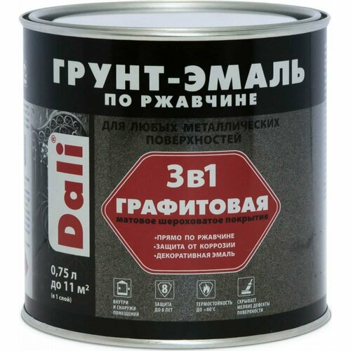 Грунт-эмаль по ржавчине рогнеда Dali 3 в 1 графитовая, серая Ral 7024, 0.75 л 232348