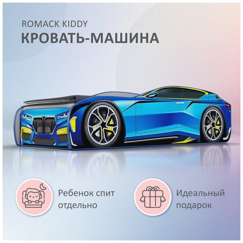 Кровать-машина Кидди (47, 169, Односпальные, Одноярусные, Синий, 74) Romack