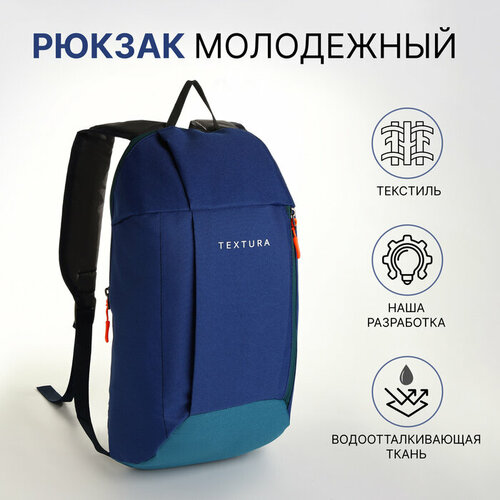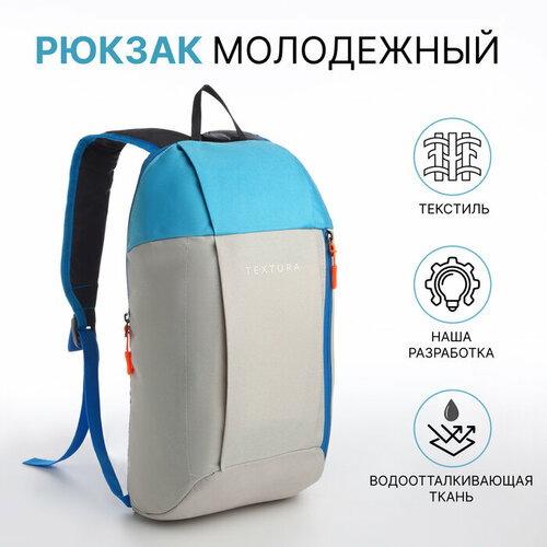 Рюкзак спортивный на молнии, TEXTURA, наружный карман, цвет бежевый/голубой