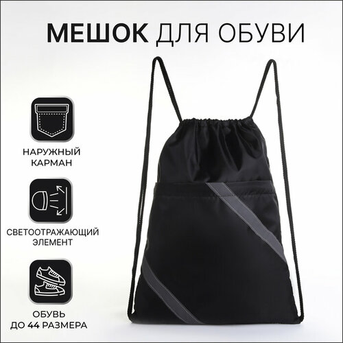 Мешок для обуви на шнурке, «зфтс», светоотражающая полоса, наружный карман, цвет чёрный