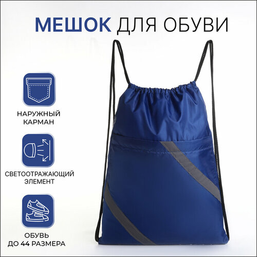 Мешок для обуви на шнурке, «зфтс», светоотражающая полоса, наружный карман