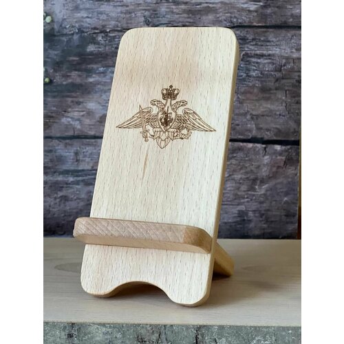 Подставка для телефона из дерева Rossovideti с гравировкой герба Вооруженных сил