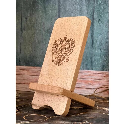 Подставка для телефона из дерева Rossovideti с гравировкой Герб РФ