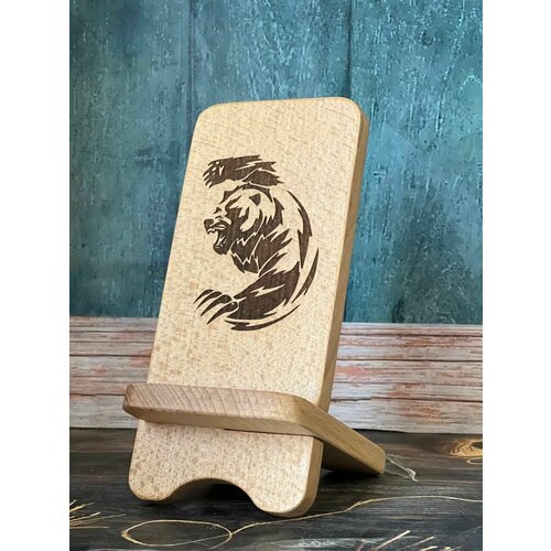 Подставка для телефона из дерева Rossovideti с гравировкой Медведь